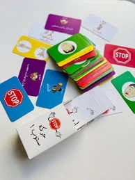 - بطاقة ستوب : ينطق جميع اللاعبين كلمة ستوب بسرعة، وآخر لاعب ينطقها يأخذ البطاقات المرمية في الوسط .
