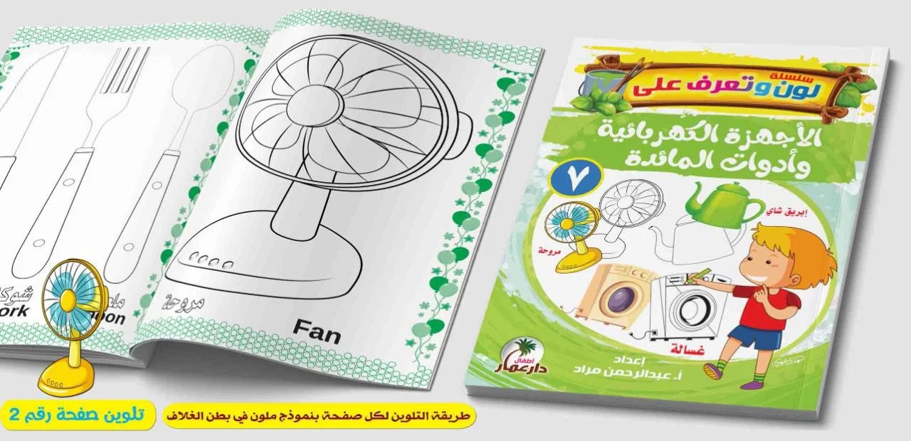 وهناك نموذج للتلوين يقلده الطفل حتى تساعده على ضبط الألوان.
