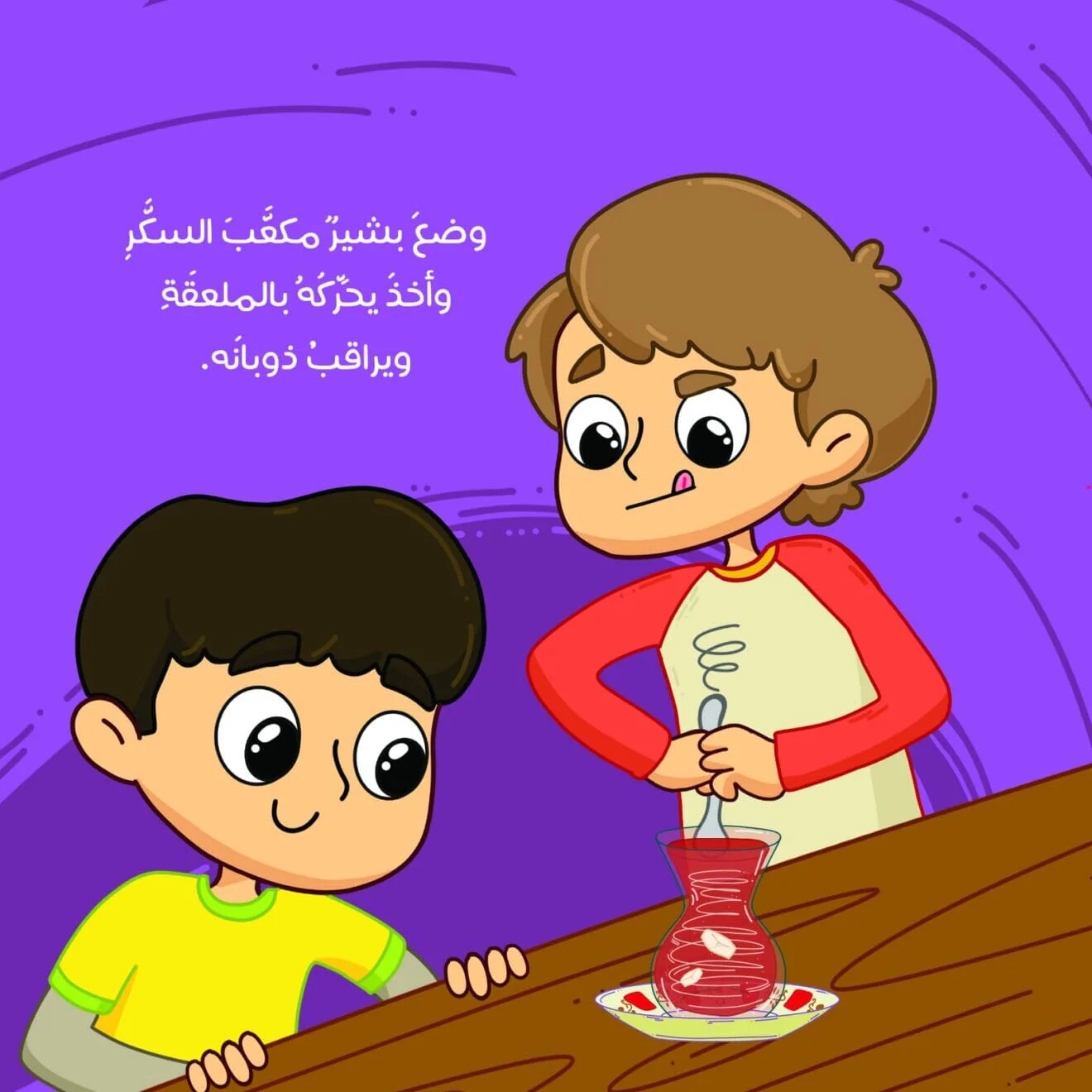 اجعل قراءة قصة السكر يستحم جزءًا من الروتين اليومي لطفلك، واستمتع معه بمشاهدة مكعب السكر يذوب في الماء، واكتشف معه متعة العلم من خلال التجربة العملية المبسطة والممتعة.