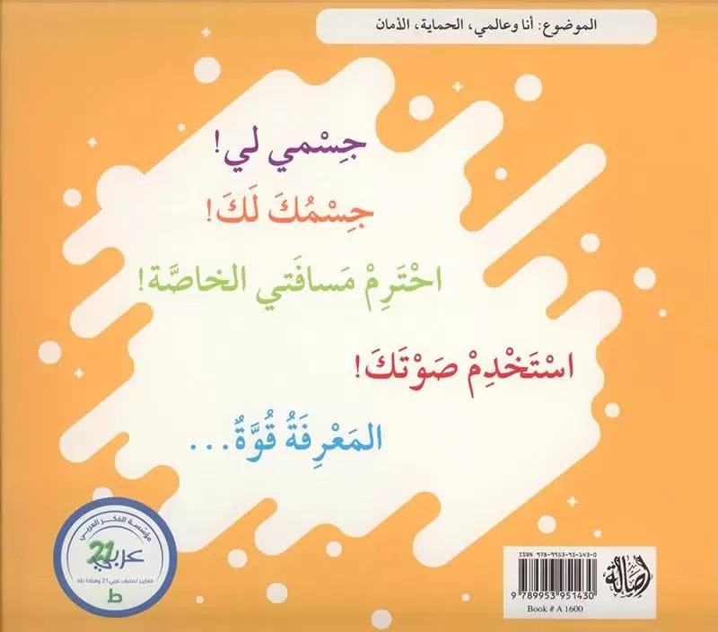 يبدأ الكتاب برسم حدود واضحة وحاسمة للطفل من خلال شعار “جسمي لي.. جسمك لك”.